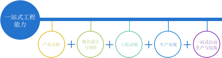 漢鼎精密模具一站式工程核心部門組成:開發部 - 手板加工部 - 工模部 - 注塑部